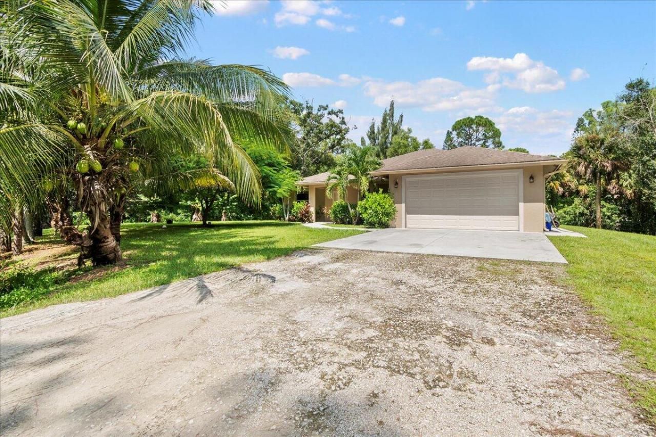 Edit mortgage details for a more accurate paymentTucked away in a serene setting of Loxahatchee Groves, this 3-bedroom, 2-bath single-family home offers the perfect blend of privacy, modern convenience, and the perks of newer construction. Built in 2018, this 2,759 sq ft residence rests on over an acre of lush land, surrounded by mature trees. Enjoy the spacious split floor plan with vaulted ceilings, a gourmet kitchen featuring granite countertops and stainless steel appliances. The master suite includes dual sinks, a separate shower, and a soaking tub. Impact windows, a large screened and covered patio, a covered porch, and an attached 2-car garage complete the package--ideal for those seeking tranquility in Palm Beach County!